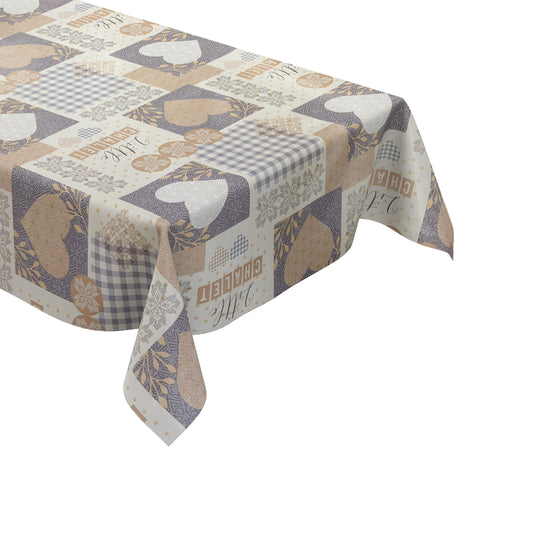 Wachstuch Tischdecke B4026-01 Herzen Holz Alm weiß beige eckig rund oval