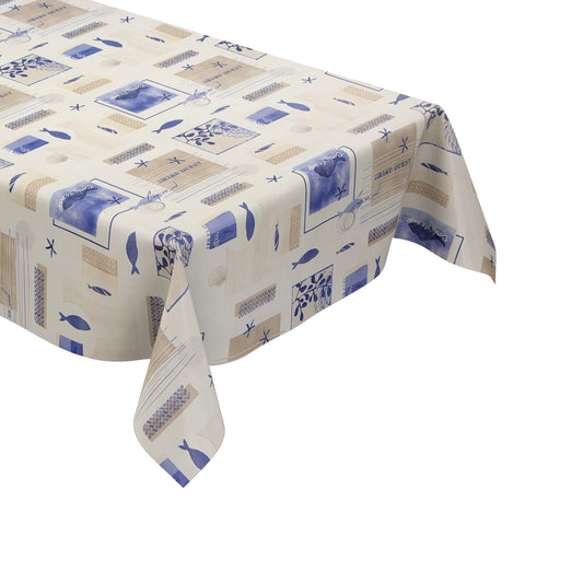 Wachstuch Tischdecke 06393-01-01 beige maritim Fische Meer eckig rund oval
