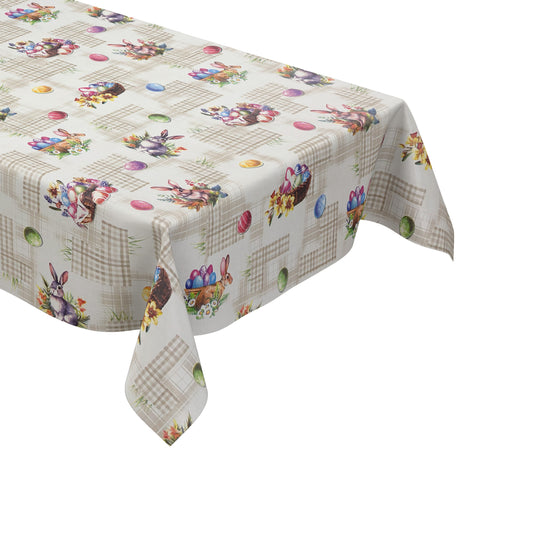 Wachstuch Tischdecke P1268-1 beige Ostern Osterhase Osterei eckig rund oval