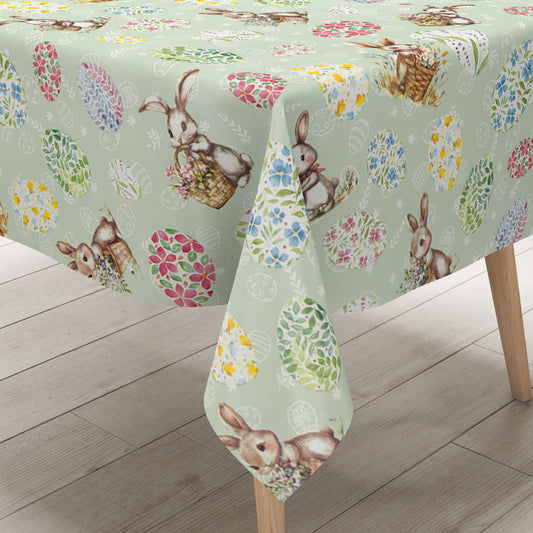 Wachstuch Tischdecke P1268-2 hellgrün mintgrün Ostern Osterhase Osterei eckig rund oval
