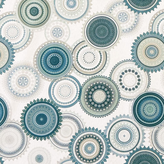 Jacquard Tischdecke aus beschichteter Baumwolle mit Fleckenschutz MANDALA16 petrolfarben Mandala eckig rund oval