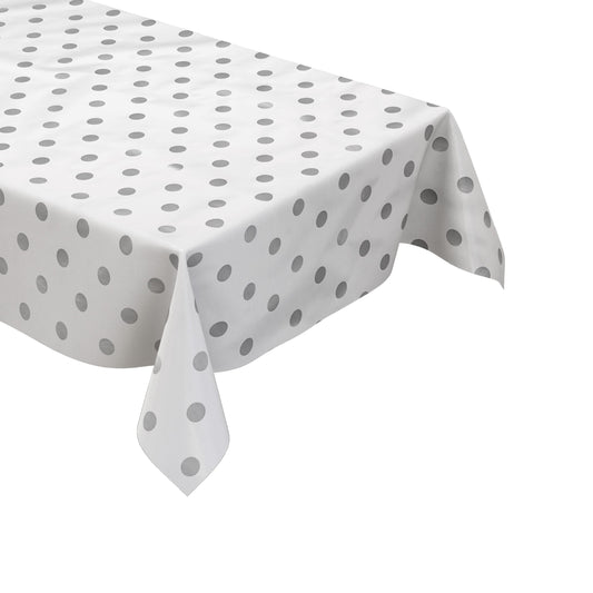 Wachstuch Tischdecke 01039-02 silbergraue Punkte auf weiß retro Dotties eckig rund oval