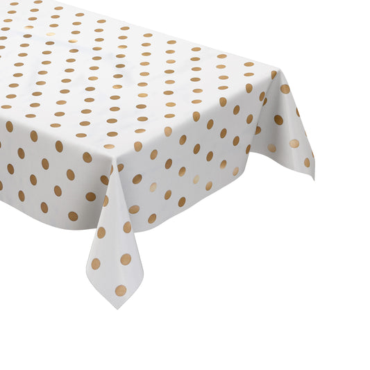 Wachstuch Tischdecke 01039-03 goldene Punkte auf weiß retro Dotties eckig rund oval