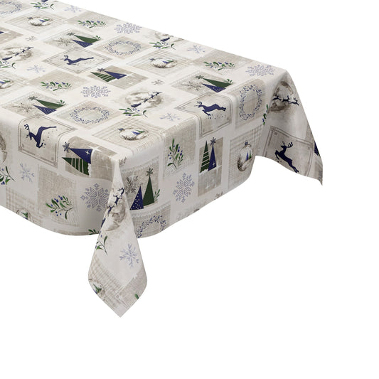 Wachstuch Tischdecke 06352-02 blau grün Weihnachten Skandinavien Rentier Schneeflocke eckig rund oval