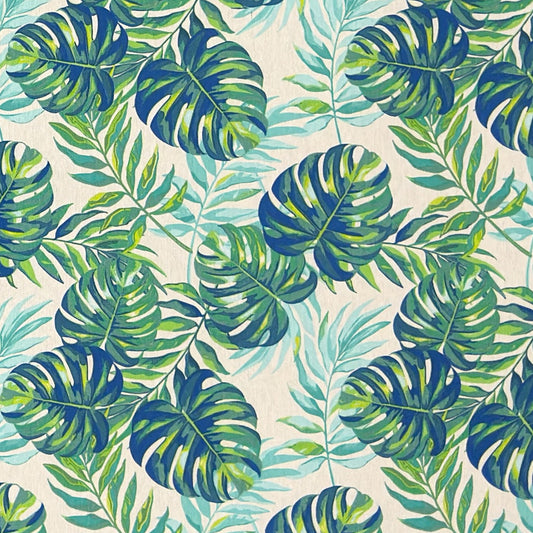 Jacquard Tischdecke aus beschichteter Baumwolle mit Fleckenschutz ANTILLAS Dschungel Monstera Blätter eckig rund oval