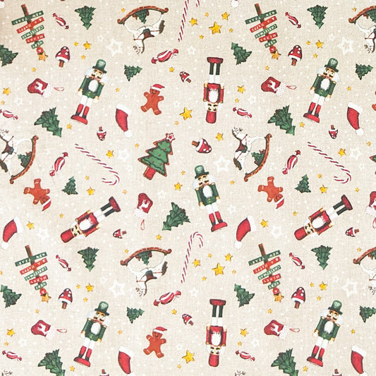 Jacquard Tischdecke aus beschichteter Baumwolle mit Fleckenschutz DUMAS FONDA CULLA Weihnachten Nussknacker Erzgebirge beige eckig rund oval