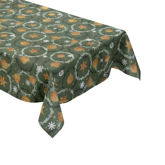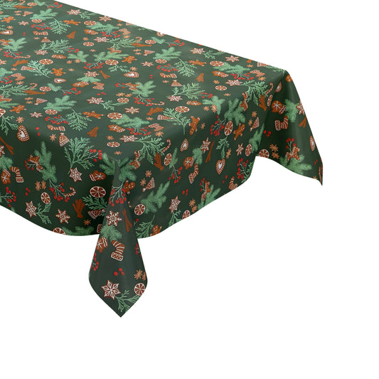 Wachstuch Tischdecke EX60 tannengrün Weihnachten Tannenzweige Lebkuchen eckig rund oval