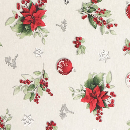 Jacquard Tischdecke aus beschichteter Baumwolle mit Fleckenschutz X42276 Weihnachten Weihnachtssterne Tannenzweige eckig rund oval