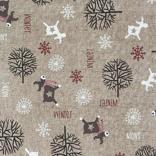 Wachstuch Tischdecke 01742-01 taupefarben Weihnachten Rotkehlchen Winter eckig rund oval