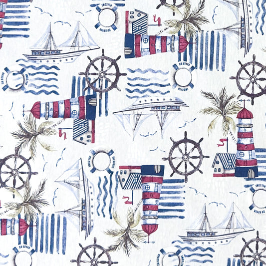 Jacquard Tischdecke aus beschichteter Baumwolle mit Fleckenschutz LIGHTHOUSE martim Leuchtturm Segelschiff eckig rund oval