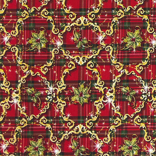 Jacquard Tischdecke aus beschichteter Baumwolle mit Fleckenschutz TARTAN ROJO Weihnachten Karo Ornamente eckig rund oval