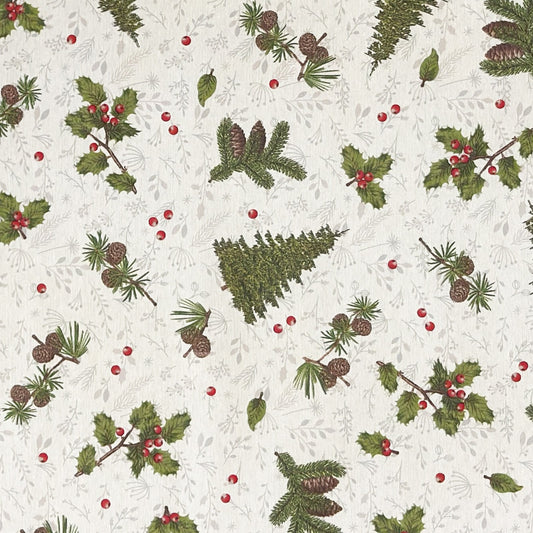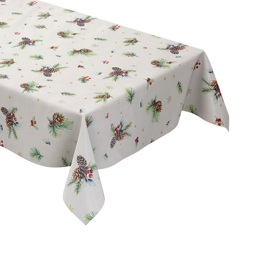 Jacquard Tischdecke aus beschichteter Baumwolle mit Fleckenschutz DAVOS Weihnachten Tannenzweige Tannenzapfen Mistelzweig eckig rund oval