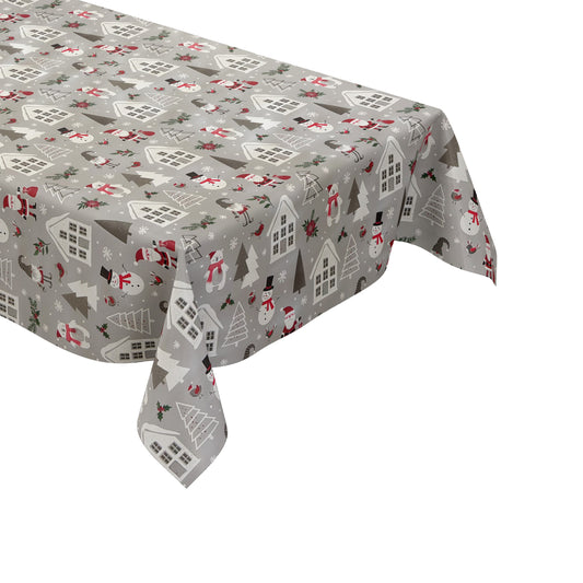 Wachstuch Tischdecke P1266-1 grau Weihnachten Weihnachtsmann Schneemann Eisbär eckig rund oval