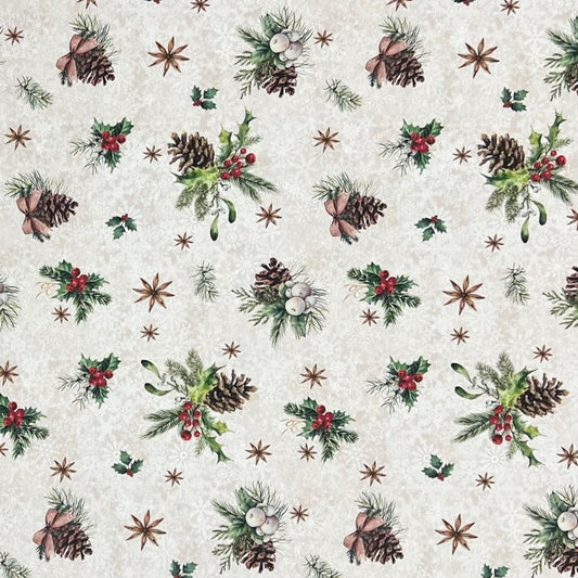 Jacquard Tischdecke aus beschichteter Baumwolle mit Fleckenschutz DAVOS Weihnachten Tannenzweige Tannenzapfen Mistelzweig eckig rund oval