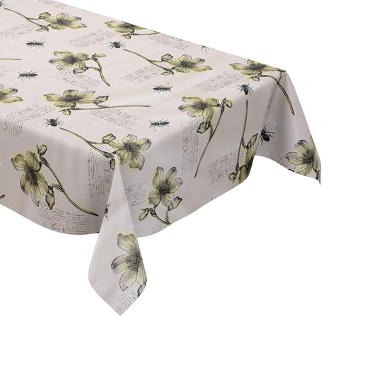 Wachstuch Tischdecke 01670-04 Blumen floral cremefarben Blüten eckig rund oval