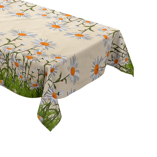 Wachstuch Tischdecke Bordürenmuster 01097-00 Gänseblümchen auf beige eckig rund oval