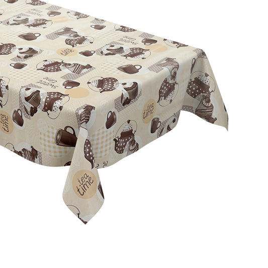 Wachstuch Tischdecke 01068-02 Tea Time Kuchen Cup Cakes beige-braun eckig rund oval Meterware