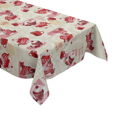 Wachstuch Tischdecke 01068-00 Tea Time Kuchen Cup Cakes Kirschen beige eckig rund oval