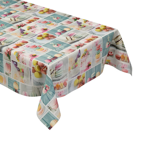 Wachstuch Tischdecke 06109-00 Macarons Gebäck Küchenmotiv türkis eckig rund oval