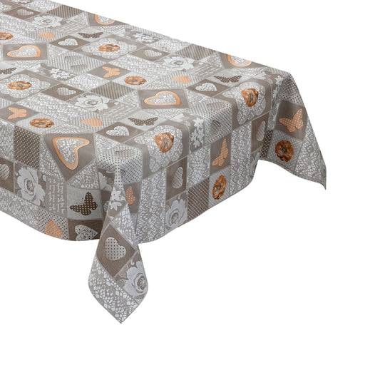 Wachstuch Tischdecke 06134-04 SWEET LOVE Herzen Holz beige braun eckig rund oval