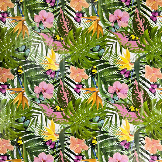 Wachstuch Rolle Meterware Rollenware B5044-01 Dschungel Monstera auf weiß