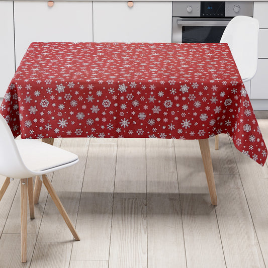 Wachstuch Rolle Weihnachten P1096-3 Schneeflocken Eisblumen rot geprägt Rollenware