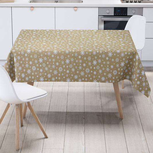 Wachstuch Rolle Weihnachten P1096-5 Schneeflocken Eisblumen beige geprägt Rollenware