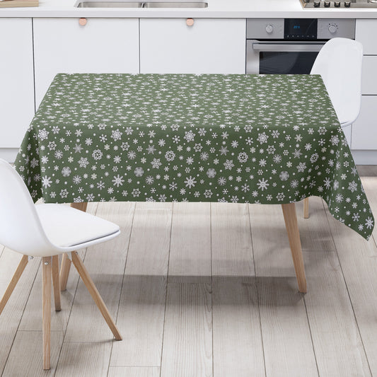 Wachstuch Rolle Weihnachten P1096-4 Schneeflocken Eisblumen grün geprägt Rollenware