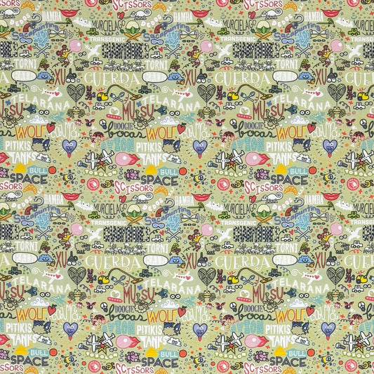 Jacquard tablecloth made of coated cotton with stain protection KUKUXUMUSU 08 Comic square round oval