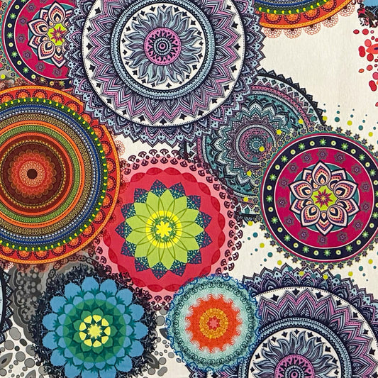 Jacquard tablecloth made of coated cotton with stain protection ARANA colorful Mandala BOLLYWOOD square round oval