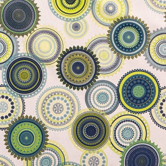 Jacquard tablecloth made of coated cotton with stain protection NASSAU Mandala green blue square round oval