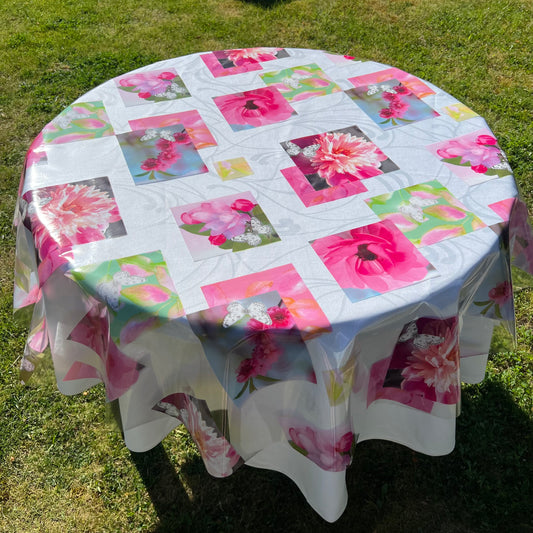 Tablecloth table foil transparent crystal clear TF36026 flowers floral white 0.15 mm 150 my thickness