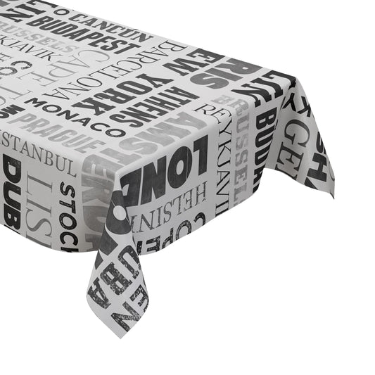 Oilcloth tablecloth K150059 cities Berlin London black white square round oval