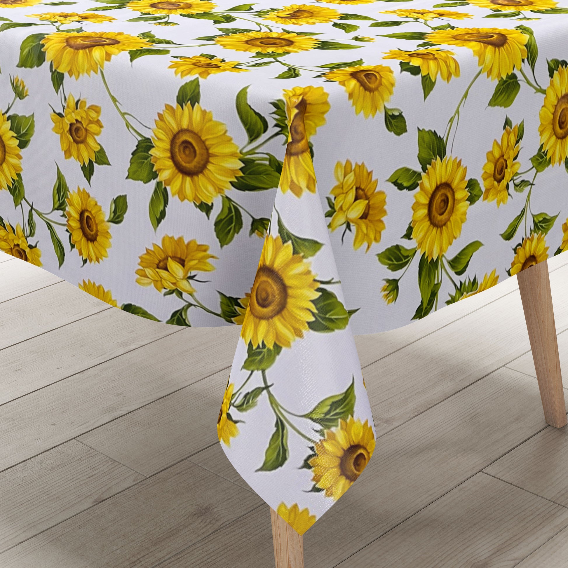 Oilcloth tablecloth B8988-01 Sunflowers on white square round oval