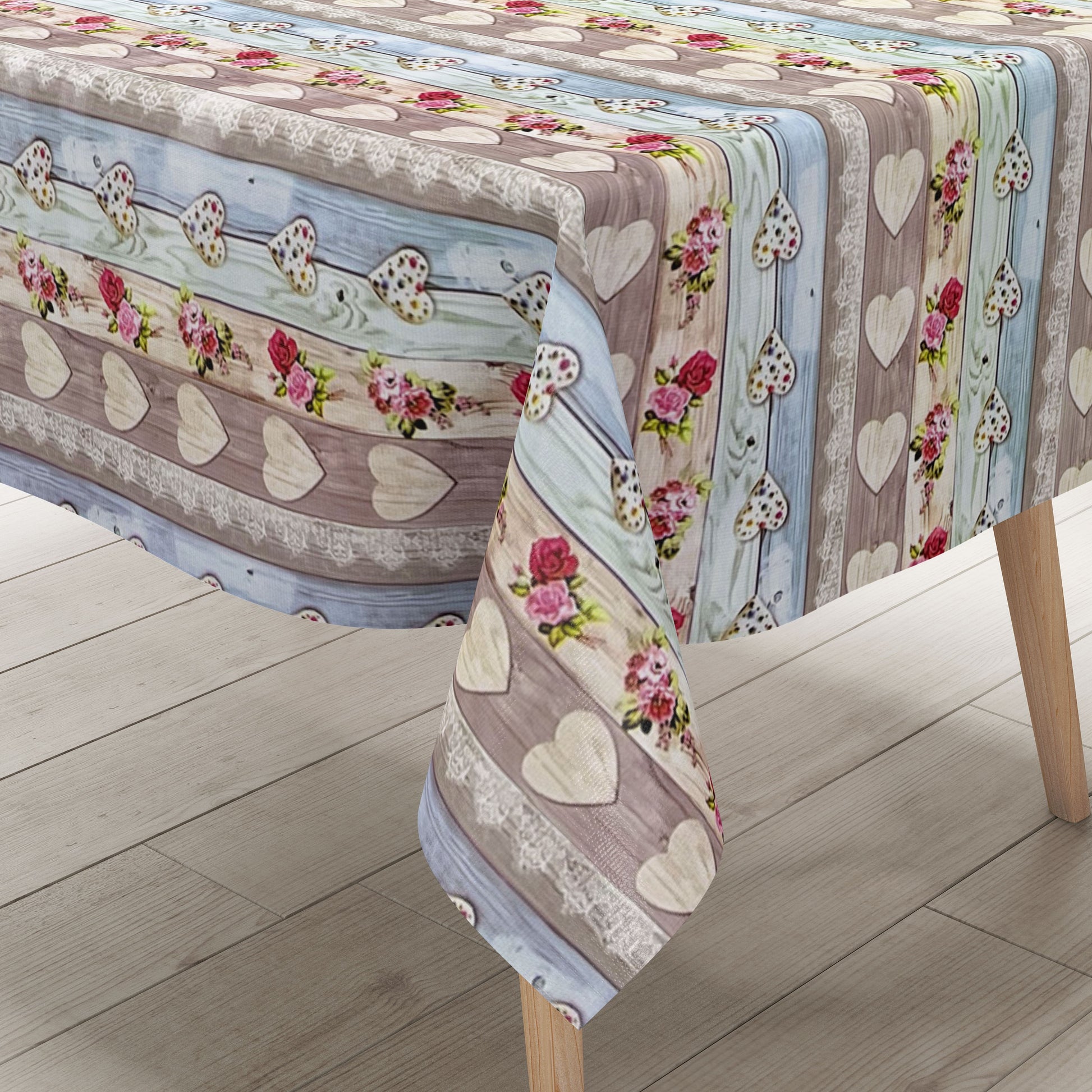 Oilcloth tablecloth B9066-01 wooden hearts alpine hut square round oval