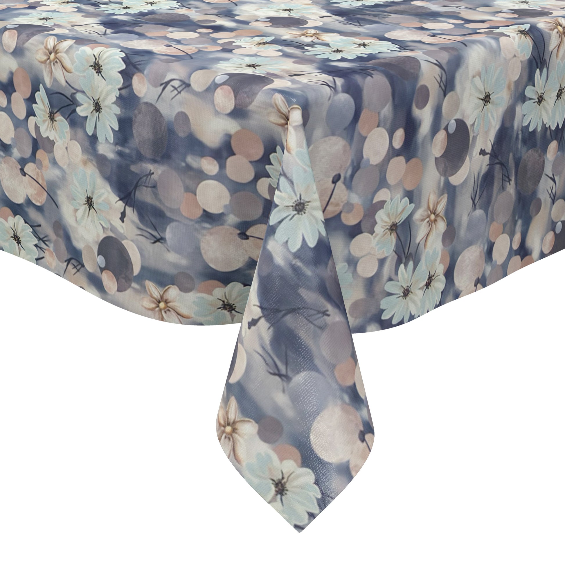 Motif: flowers, blossoms, ball, circles, light blue, petrol, modern, garden, PVC tablecloth, washable, oilcloth tablecloth in square-round-oval buy/order