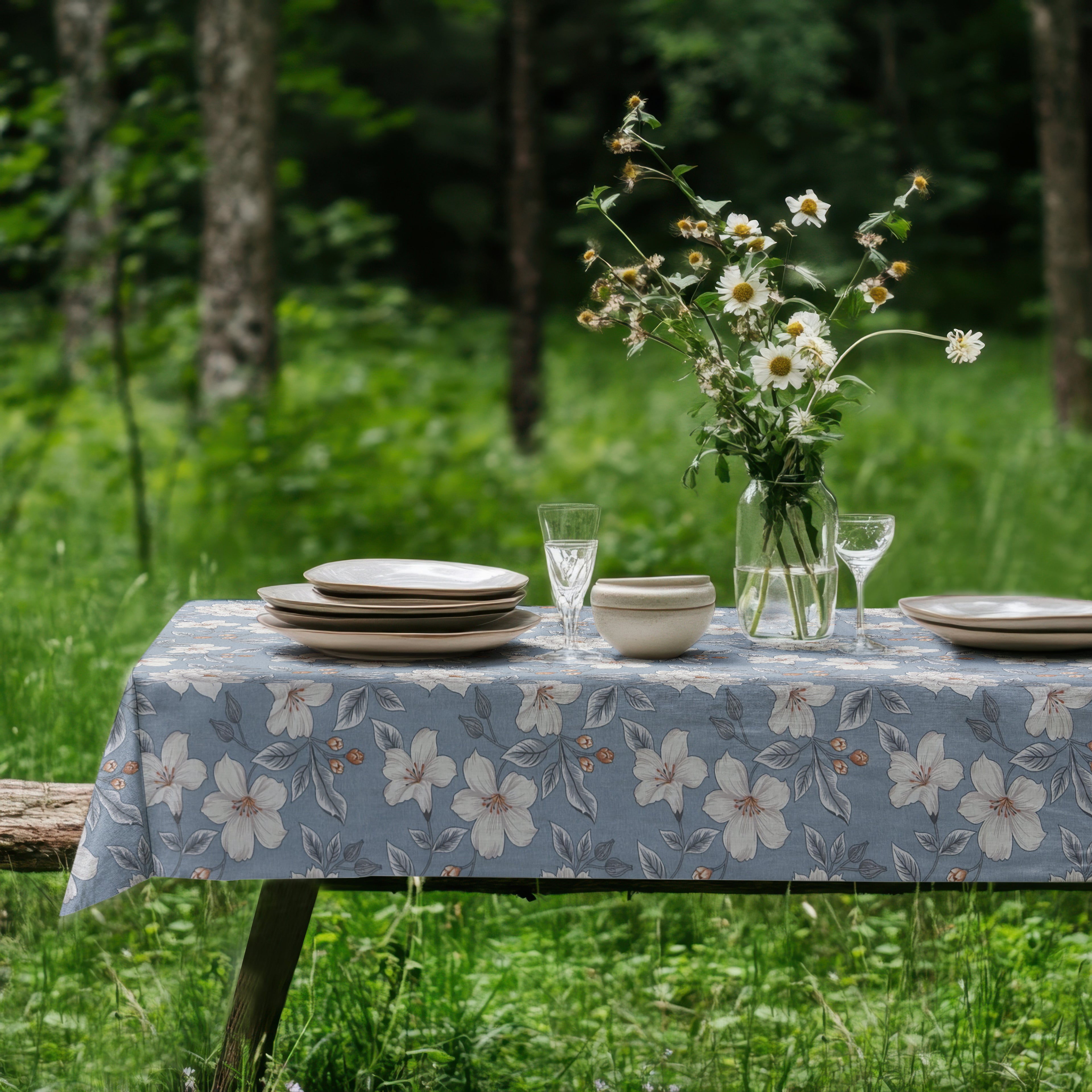 Nappe jacquard en coton enduit avec protection antitache DESTA fleurs sauvages aquarelle carrée ronde ovale