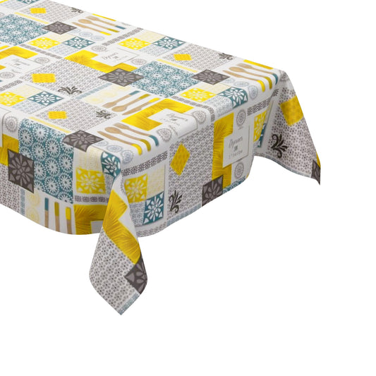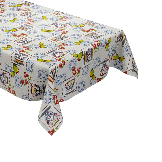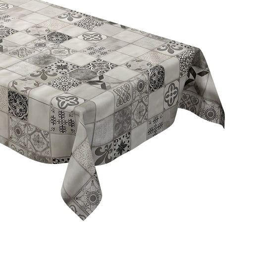 Nappe en toile cirée P1154-1 carreaux de mosaïque porcelaine pichet carré rond ovale