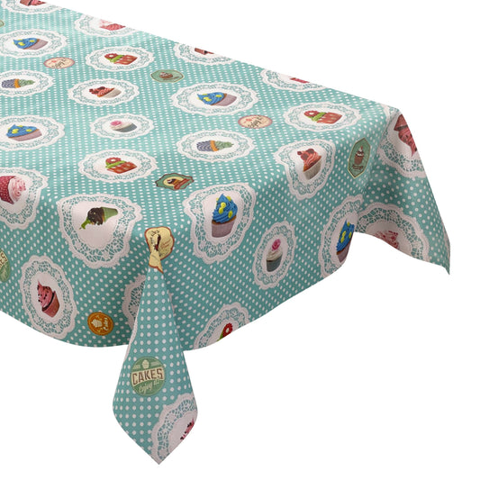 Nappe en toile cirée K150017 CupCakes pois turquoise carré rond ovale