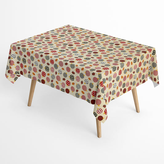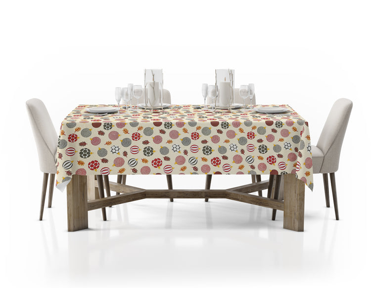 Nappe en coton Noël Avent ARSONA C-198 beige boules de Noël carrées rondes ovales