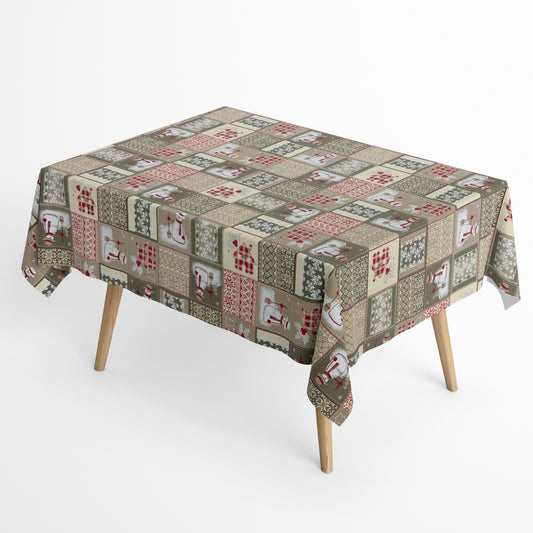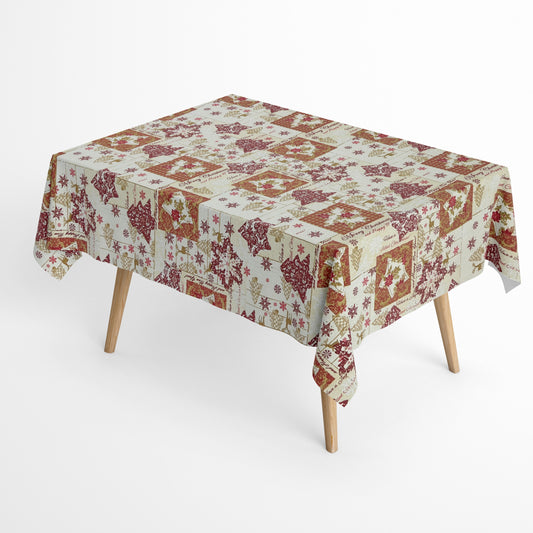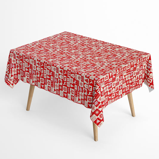 Nappe en coton Noël Avent HAYVER C-198 MERRY Christmas rouge-beige carrée ronde ovale