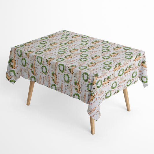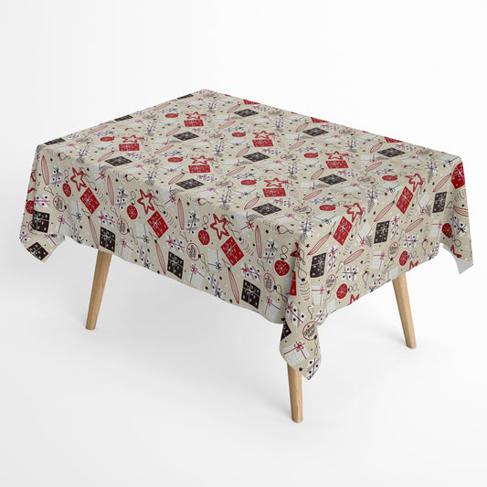 Nappe en coton Noël Avent LINERA beige cadeaux rennes carré rond ovale