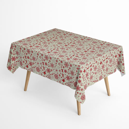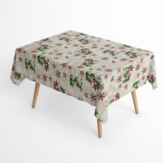 Nappe en coton Noël Avent BERINN C-198 beige flocons de neige carré rond ovale