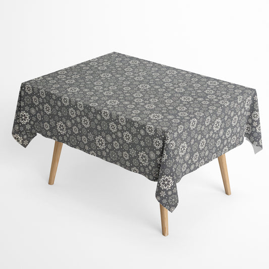 Nappe en coton Noël Avent TIRENA flocons de neige sur gris carré rond ovale