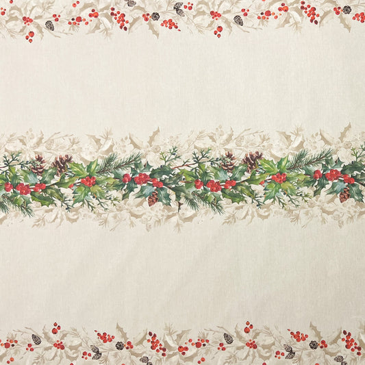 Nappe jacquard en coton enduit GLORIA motif bordure Avent Noël pommes de pin