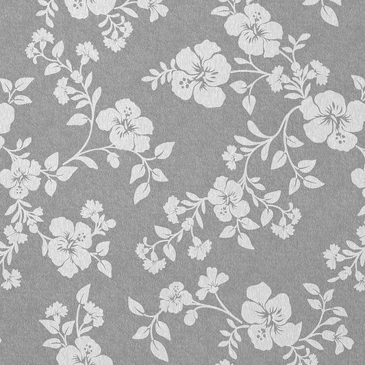 Nappe jacquard coton enduit 160 cm de large LEMIPIKA gris fleurs d'hibiscus carrée ronde ovale