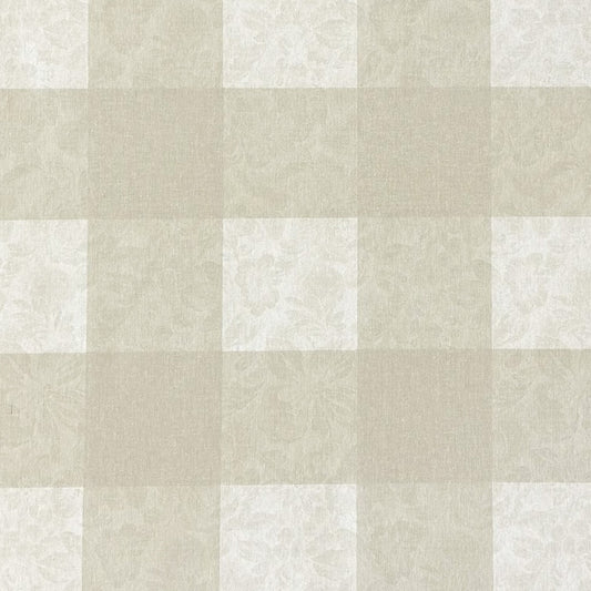 Nappe jacquard coton enduit 160 cm de large MILLET BLANCO beige carreaux fleurs carré rond ovale