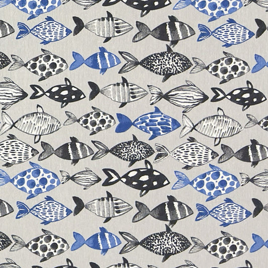 Nappe jacquard coton enduit 160 cm de large POUSSIN poisson maritime carré rond ovale