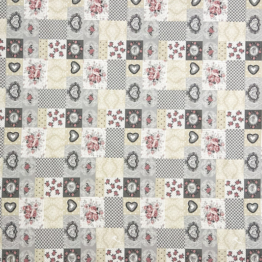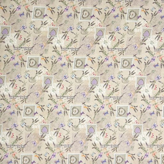Nappe jacquard coton enduit 160 cm de large MILLET TAUPE carreaux fleurs carré rond ovale