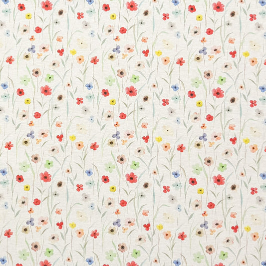 Nappe jacquard en coton enduit avec protection antitache DESTA fleurs sauvages aquarelle carrée ronde ovale